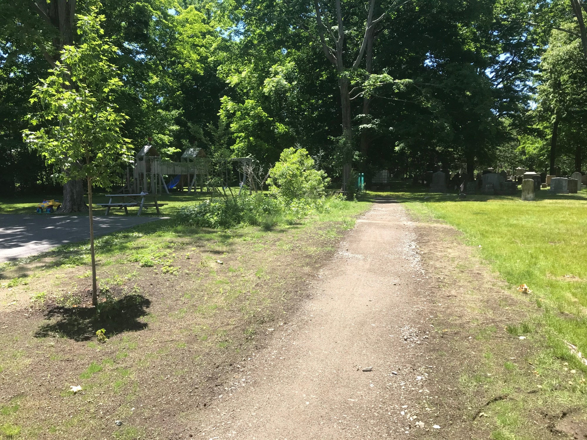 In cooperation with the Town of Dedham DPW, and its Director, Joe Flanagan, the DVPA, Inc. has planted four Sugar Maple saplings adjacent to St. Paul’s new children’s play area and cleared a path to give the children safe access. Reverend Melanie McCarley, Rector of St. Paul’s, writes: “St. Paul’s Episcopal Church is grateful for the assistance of The Dedham Village Preservation Association in planning and constructing a walkway for the safety of our children to move from the church building to their new playground. Prior to the installation of the walkway children would make their way behind cars through the parking lot; a hazardous undertaking to a place of play. The Dedham Village Preservation Association and the Dedham DPW made this pathway possible by removing overgrown areas as well as a fence, gifting a small portion of land and constructing the walkway. We are deeply appreciative of their efforts.”