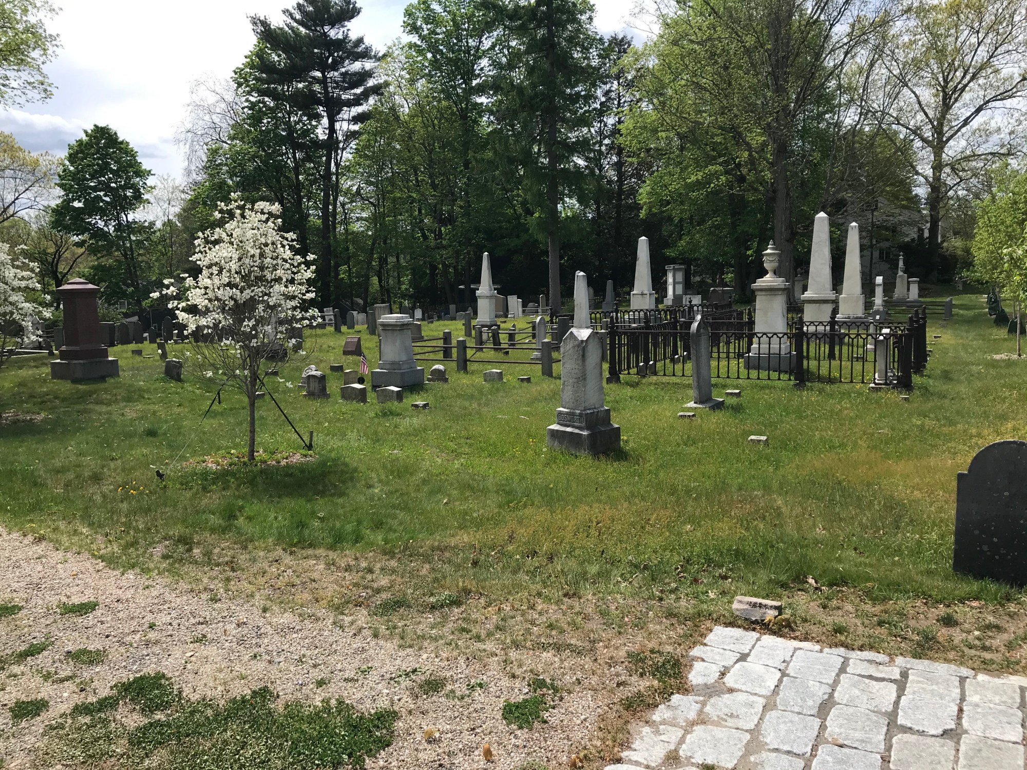 Our agenda is to continue to clean and repair gravestones, and to reclaim endangered sites, using existing materials wherever possible. Our feeling is that this is an ancient cemetery, and part of its charm and authenticity is its weathered, centuries-old look. Our goal is to ensure that it is safe for the many tourists that visit every year, and that its rich Dedham history is preserved.