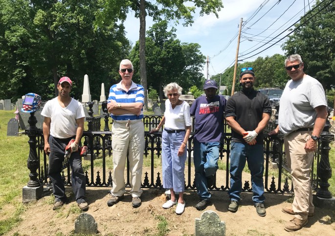 Work to restore the Old Village Cemetery continues with the installation of replicated ironwork for the Howe plot on Village Avenue. More plots are scheduled for restoration this year.