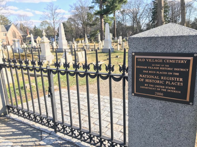 The landmark Old Village Cemetery, established in 1637 and listed on the National Register of Historic Places, is one of the most significant Colonial Cemeteries in America, and among Dedham’s most visited historic sites.