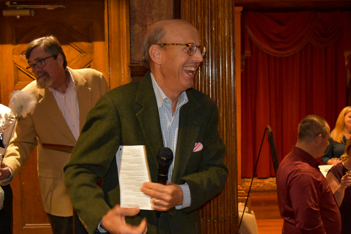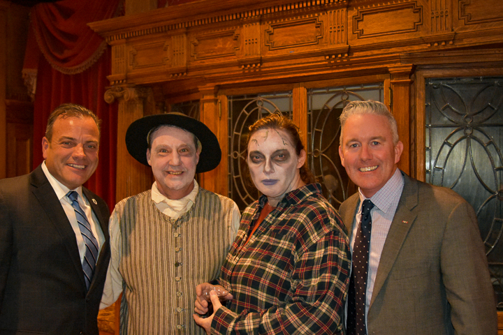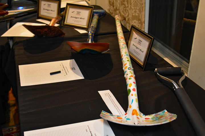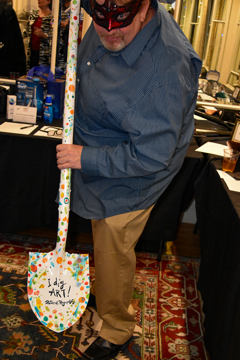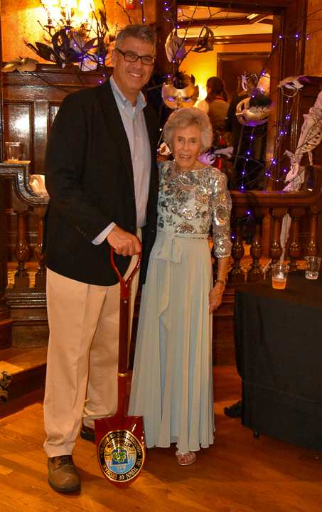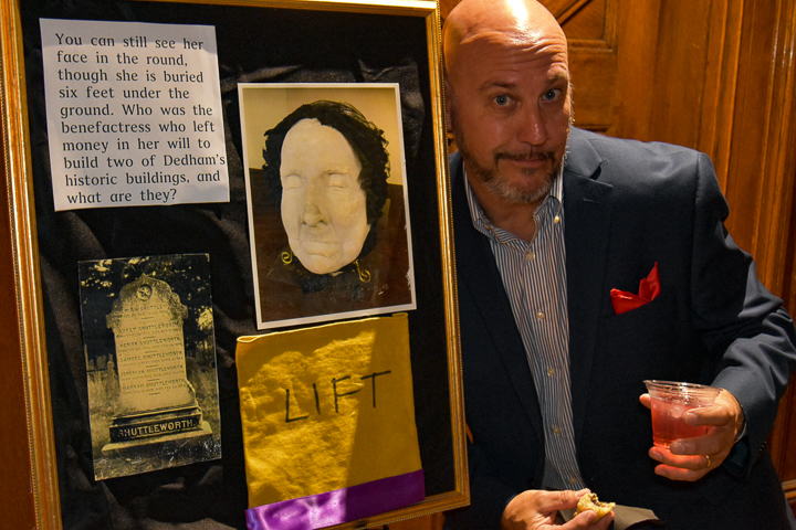 A delightful surprise during the evening was the presentation by State Representative, Paul McMurtry, and State Senator, Mike Rush of a check for $150,000 from the State to the Dedham Village Preservation Association, Inc., the 501(c)3 that is funding this project. I also want to thank those who contributed in-kind to our success: the New England Patriots, the Calgary Flames, Bellestar Jewelry, Horizon Aviation, Bartlett Tree Experts, Jim Bride, Molly Jackson, Nancy Sargent Howell, the Dedham Community Theater, Murph’s Place, Big Bear, Ron’s Ice Cream, Café Tremezzo, King’s Dining & Entertainment, Boston’s Dreamland Wax Museum, Bostonia Public House, Total Wine, Dr. Anna Vishart, DDS, Horizon Beverage Co., M.S. Walker, Inc., Wegman’s, Photographer, Kerry Hawkins, and the artists who contributed their imaginative decorations to the Gravedigger’s shovels: Carol Haggerty, Peter Reynolds, Diane Gaikazova, Wiley Holton, Liz Boston, Sal D’Antona, and rali Weaver…and, finally to Madame Dar-see, whose imaginative flights of fancy into the future bode good things for Dedham and for the Old Village Cemetery Restoration Project. Thank you all, the work continues, and we look forward to seeing you, again, next year.