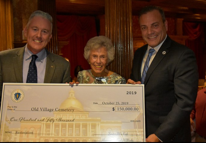 I want to thank the more than 200 guests who attended the Gravedigger’s Gala on Friday night at the Endicott Estate to benefit the renovation of the Old Village cemetery. I had a wonderful time, and it looked as if everybody else did too, and that was our objective during the many months of planning that went into the event. I am so grateful to the gala Committee for the hard work and dedication that they unselfishly gave on behalf of a cause that has been close to my heart for many years. To Co-chairs Darcy Lane and Maureen Joyce, thank you for your inspired leadership, and to Jonathon Briggs, Anne Cadigan, Nancy Clement, Tracy Driscoll, Joe Flanagan, Michele Heffernan, Mary Louise Kehoe, Jeannine Lathum, Johanna McBrien, Glenn McGibbon, and Ted Russell, thank you for the many talents that you contributed to the planning of an evening of hair-raising good fun. A special thanks to Jim Bride for his tantalizing video promos at the Community Theater that brought the Gravedigger’s Ghost to life after death, and, of course, to Dedham DPW Director, Joe Flanagan, who has been charged with the daunting task of resurrecting the dead, and whose hard work has made this three-year project possible. Joe’s steady hand has guided the work from the beginning, and is everywhere in evidence throughout the Cemetery, from the handsome Village Avenue entrances, to the newly repaired monuments and headstones. And, I am so grateful to the Dedham Visionary Access Corporation, community TV at its best, Executive Director, Donna Greer, and her creative staff, Brian, Dennis, and George, for their coverage prior to, and during, the Gala.
